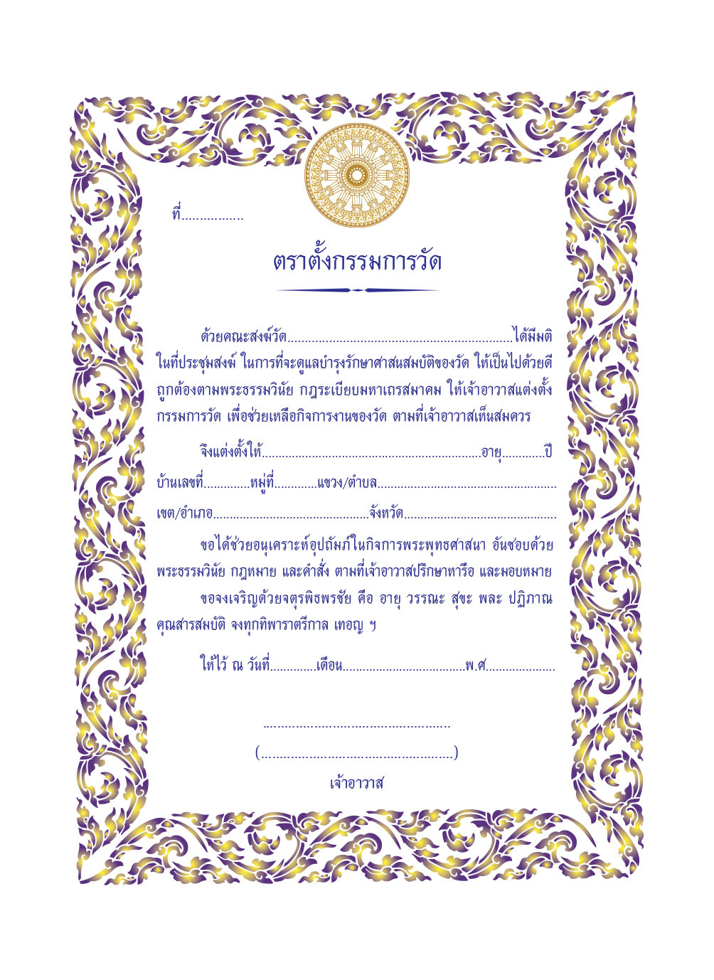 • ใบตราตั้งกรรมการวัด (แบบที่1)